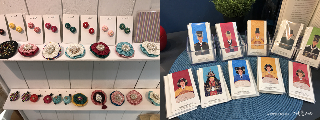 한복 원단을 이용해 다양한 액세서리를 만든 더고유와 조선 시대 복식을 캐릭터화한 더 조선 다이너스티처럼 한국의 전통적인 멋을 볼 수 있는 곳도 있었습니다. 정말 다양한 소품샵과 아트샵들이 모여 있어 구경하는 재미가 쏠쏠했어요.