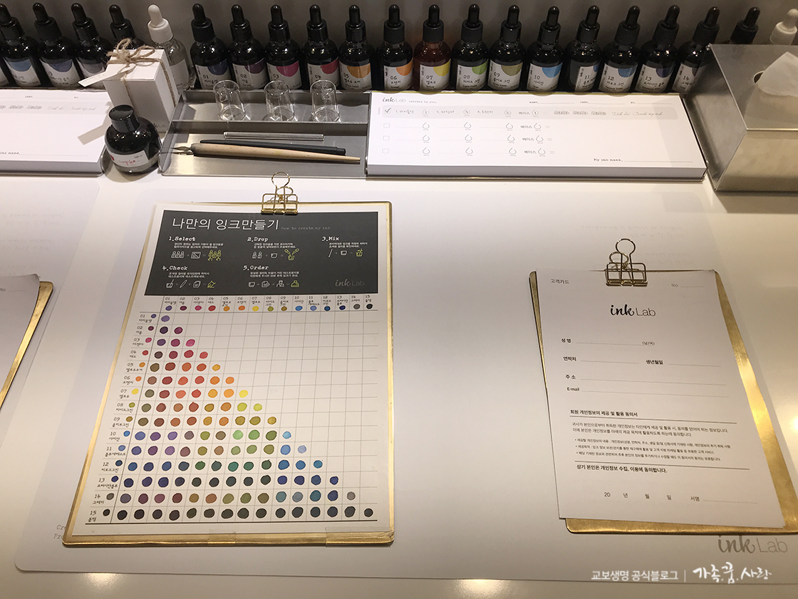 나만의 잉크 만들기 체험 공간도 있습니다. 다양한 색조합을 통해 자신이 원하는 색을 직접 만들어 보세요.