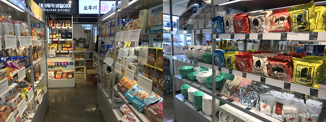 편의점에는 고잉메리의 상징인 요괴라면, 요괴밀크를 비롯해 수입 과자들과 음료, 고잉메리의 굿즈들이 진열되어 있어요. 고잉메리에서는 물도 편의점에서 직접 구매해서 드셔야 합니다.