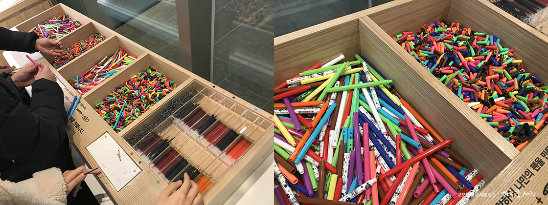 한 쪽에서는 색연필, 마커 등을 이용해서 그림을 색칠해 볼 수도 있었어요. 마치 어린아이로 돌아간 듯한 기분을 느낄 수 있었습니다.