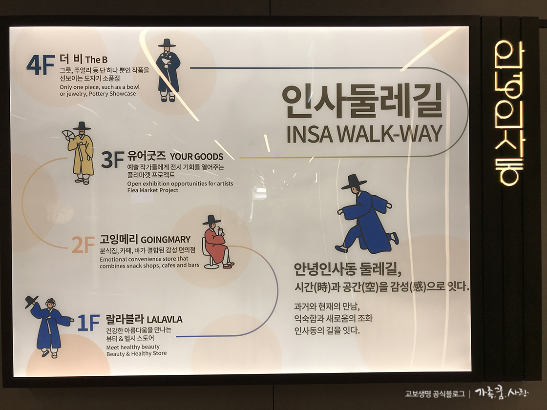 저는 인사둘레길이라고 불리는 길을 따라 1층부터 위로 올라가면서 구경해 보았는데요, 지금부터제가 방문했던 곳들 중 추천 드릴 만한 몇 곳을 골라 소개해 드릴게요.