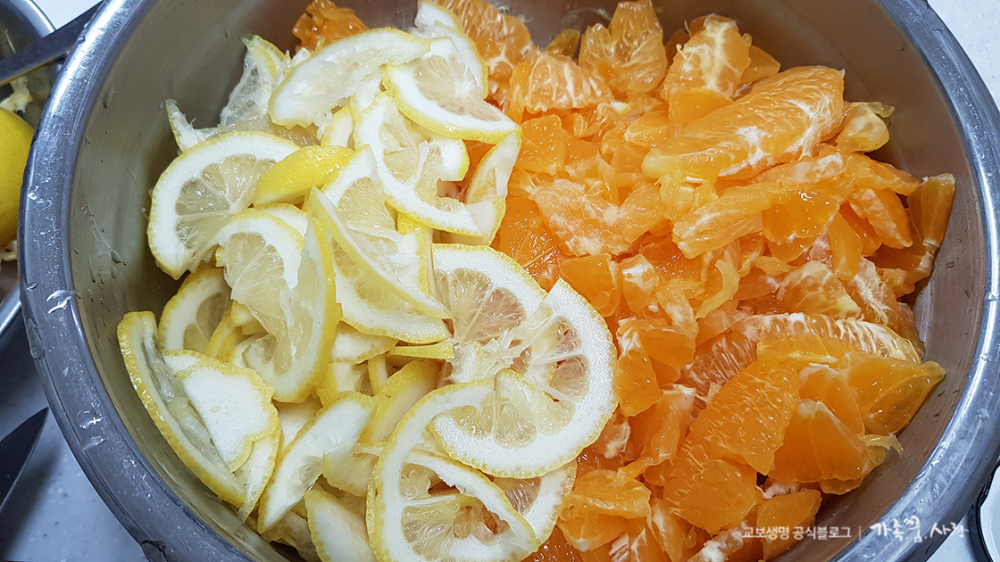 코로나19로 일상이 멈춘 느낌입니다. 숨죽이며 건강을 염려하는 것이 일과가 되어 버린 요즘, 면역력에 좋은 음식을 챙기는 일이 더욱 중요해졌는데요, 면역력 강화에 좋은 레몬 판매량이 급증했다는 뉴스를 보니 제철을 맞은 제주산 레몬과 한라봉으로 과일청을 만들고 싶어졌습니다. 넉넉히 만들어 가족뿐만 아니라 지인들에게도 힘내라는 의미를 담아 선물하면 좋을 것 같아요!