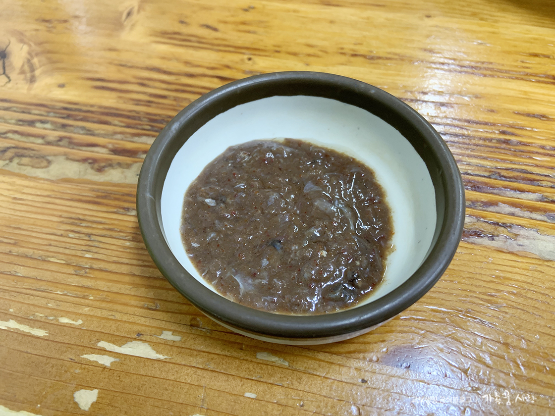 함께 나오는 멜젓(멸치젓)은 쌈과 함께 먹으면 감칠맛이 혀를 감쌉니다. 멜젓은 삼겹살 같은 구운 고기와 먹어도 잘 어울릴 듯한 맛입니다.