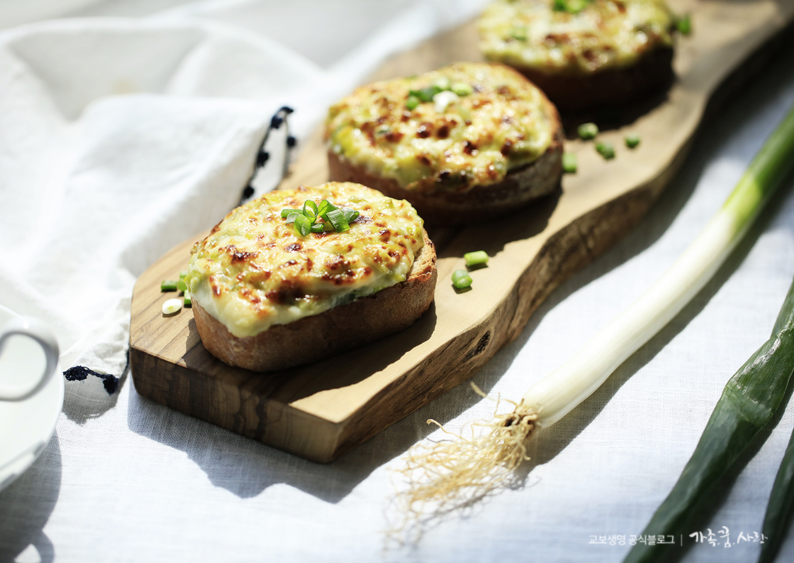 제가 요즘 가장 관심 있게 보는 프로그램은 지역의 특산물을 활용한 레시피를 소개하는 <맛남의 광장>입니다. 얼마 전 이 프로그램에서는 진도의 대파를 활용한 다양한 요리를 선보였는데요, 그 중에서도 저는 마늘바게트의 신버전이라고도 할 수 있는 대파바게트에 도전해 봤어요. 처음엔 한식 요리에서 빠지지 않는 대파와 바게트의 조화가 생소했는데, 직접 만들어 보니 대파와 크림소스가 무척 잘 어울린다는 것을 알게 됐습니다. 특히 대파에는 향균작용이 뛰어난 알리신이 풍부하게 함유되어 있어 면역력을 높여 주고, 환절기 감기 예방에도 도움이 된다고 해요. 소스를 한 번 만들어 놓으면 여러 번 해먹을 수 있어 식사 대용으로도 좋고, 아이들 간식이나 와인 안주로도 손색 없는 대파바게트, 지금부터 만들어 볼게요!