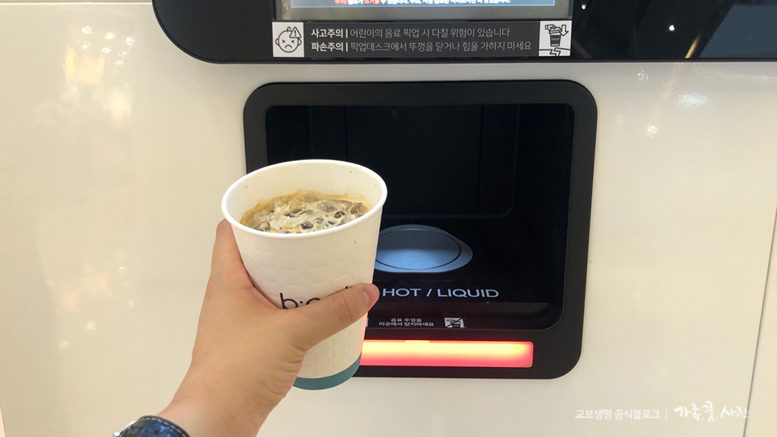 주문 후 커피가 제조되기까지 약 1분 정도의 시간이 걸렸습니다. 저는 현재 카페에서 알바를 하고 있는데요, 사람이 커피를 만들다 보면 아무래도 매번 계량의 차이가 나기 때문에 음료의 맛이나 양이 일정하기가 굉장히 어렵습니다. 하지만 비트에서는 딱 정해진 양으로만 만들어지기 때문에 일정한 맛을 기대할 수 있다는 점이 만족스러웠어요. 로봇이 만든 커피지만 일반 카페에서 바리스타가 만들어 준 커피 맛과 전혀 다르지 않았습니다.