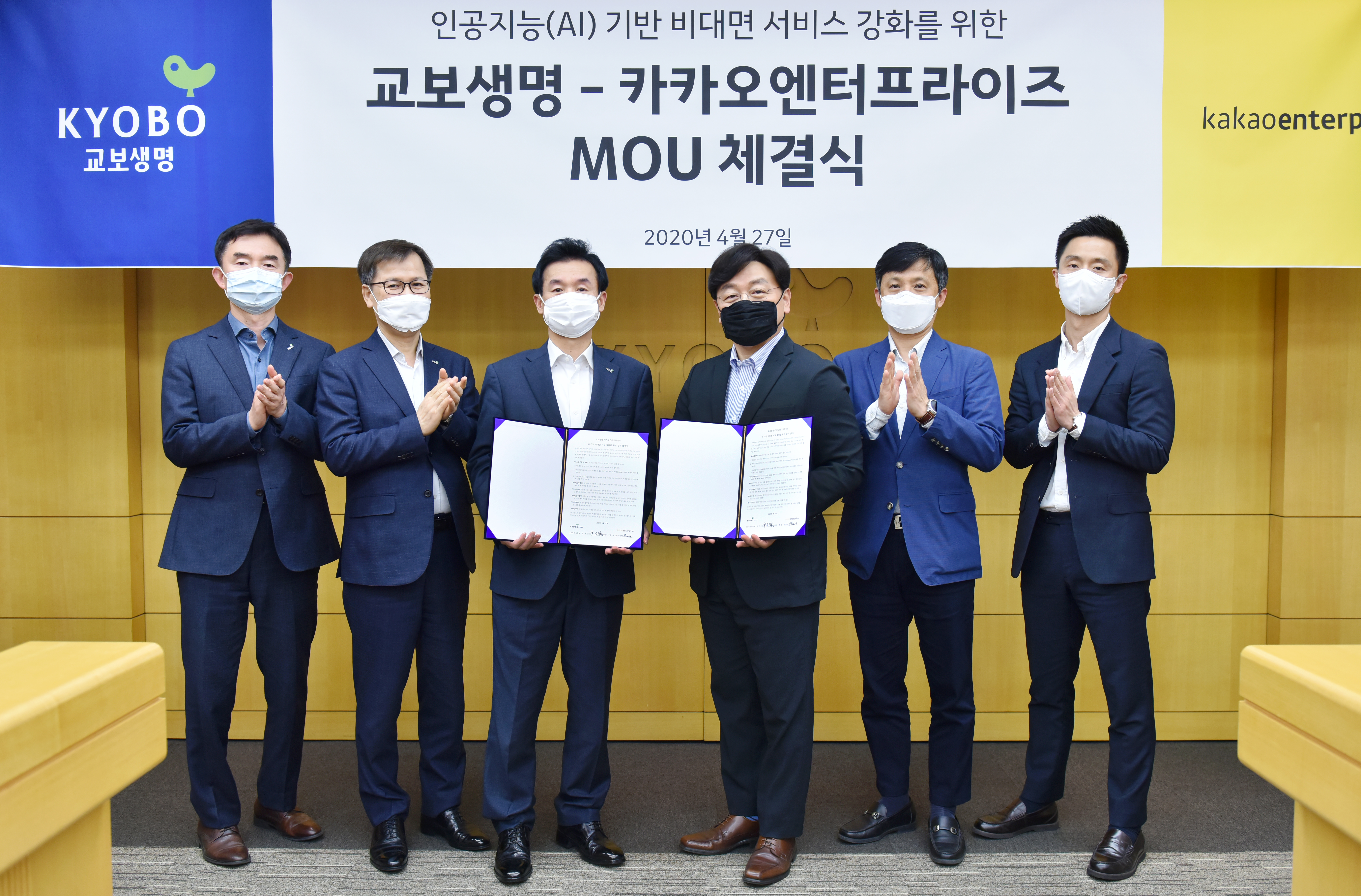 이번 업무협약은 포스트 코로나에 대비한 ‘디지털 교보 2020’의 일환으로, AI 기술을 한발 앞서 보험업무에 적용하고 비대면 고객 서비스를 활성화하기 위해 마련됐는데요, 보험업계에서 카카오엔터프라이즈와 업무협약을 맺은 것은 교보생명이 처음입니다.