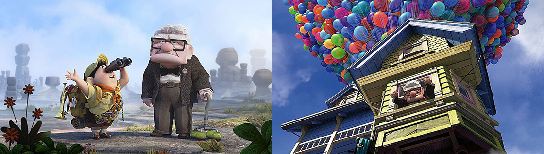탐험가를 꿈꾸었던 할아버지 칼 프리드릭슨(에드워드 애스너)과 꼬마 탐험대 소속 러셀(조던 나가이)이 풍선 달린 집을 타고 함께 모험을 떠납니다. 사별한 아내 엘리밖에 몰랐던 칼은 엘리의 꿈을 이루기 위해 떠난 모험에서 새로운 경험을 하며 중요한 삶의 가치들을 깨닫게 되죠. 영화 초반 엘리와 칼의 결혼 이야기를 다룬 부분이 특히 기억에 오래 남는데요, 화사한 색감과 감동적인 스토리가 지친 현대인의 마음을 위로해 줍니다.