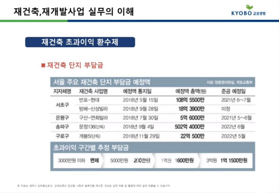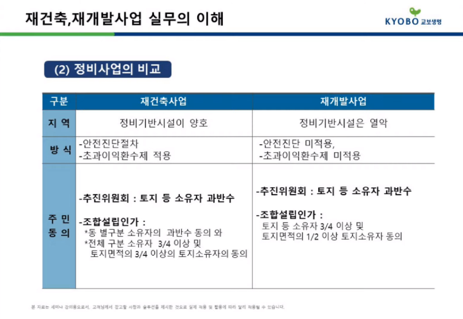 저에게 특히 흥미로웠던 내용은 재건축과 재개발의 비교 강의였는데요, 재건축과 재개발의 차이에 대해 잘 몰랐던 저로서는 참 유익한 강의였습니다.