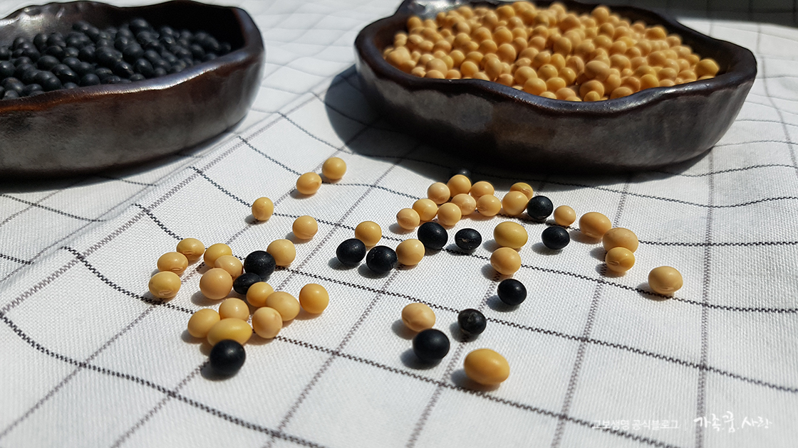 콩나물 콩은 햇콩으로 해야 발아가 잘 된다고 해요. 그래서 저는 2019년산 햇콩나물 콩인 ‘유태’를 주문했습니다. 유태는 콩나물로 기르는 잘고 흰 콩으로, 저는 인터넷으로 노란 콩나물 콩과 검은색 콩나물 콩(약콩) 두 가지를 주문했어요. 평소 집에서 먹던 콩보다 크기가 훨씬 작고 귀여웠습니다.
