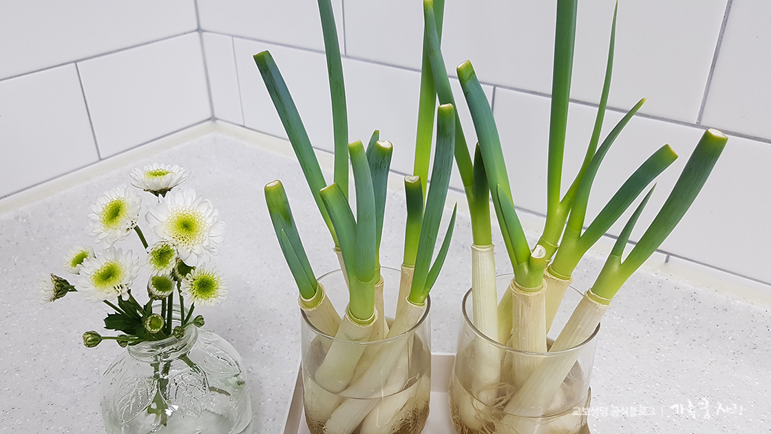 대파 수경재배 7일차의 모습입니다. 일주일쯤 지나니 대파가 몰라보게 자랐어요. 새로 올라온 대파 순의 파릇파릇한 모습이 매우 싱그럽지 않나요? 수경재배한 대파는 노지에서 자란 파보다는 맛과 향은 덜하다는 평이 있는데요, 그래도 집에서 필요할 때 조금씩 수확해 먹는 재미가 쏠쏠했습니다.