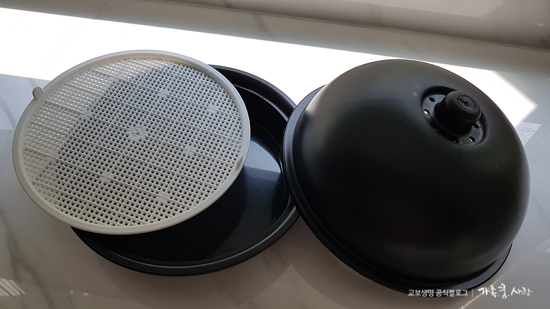 비타민C와 아스파라긴산이 풍부한 콩나물은 반찬이나 요리 재료로 흔히 쓰이는 채소입니다. 콩나물을 직접 집에서 키우려면 콩나물 재배기를 구매하시는 것을 추천하는데요, 고수들은 냄비나 주방용품을 활용해서도 잘 키우지만, 처음 키우는 분들에겐 좀 어려울 수 있기 때문이에요. 제가 구매한 콩나물 재배기는 물이 쉽게 빠지도록 구멍이 있는 채반과 검정색 돔형 뚜껑으로 구성되어 있었습니다.