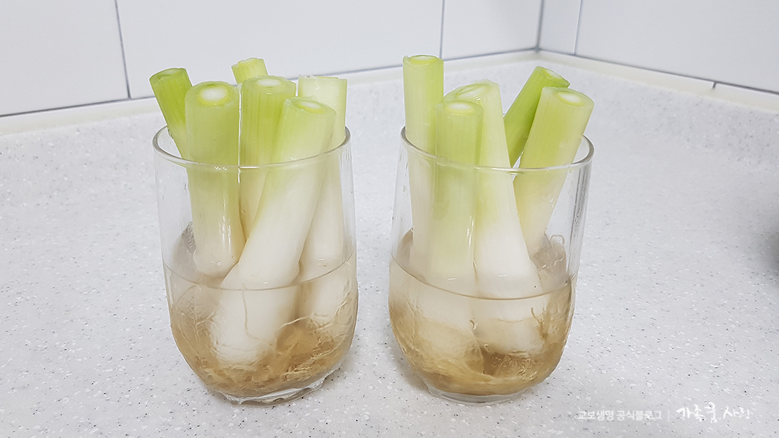 저는 집에 있는 투명한 유리컵에 절단한 대파 뿌리 부분을 넣어 주었어요. 안이 보여야 대파 상태를 쉽게 관찰할 수 있습니다. 대파를 재배할 때에는 물을 자주 갈아 주셔야 해요. 그렇지 않으면 파가 썩는 듯한 고약한 냄새가 날 수 있습니다.