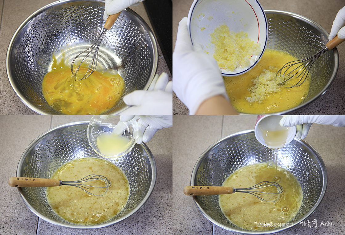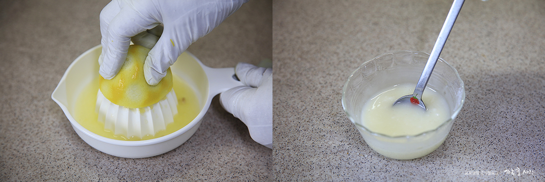 레몬즙은 시중에서 판매되는 것을 사용해도 되지만 생과를 사용해 만들면 맛과 향이 더 좋습니다.