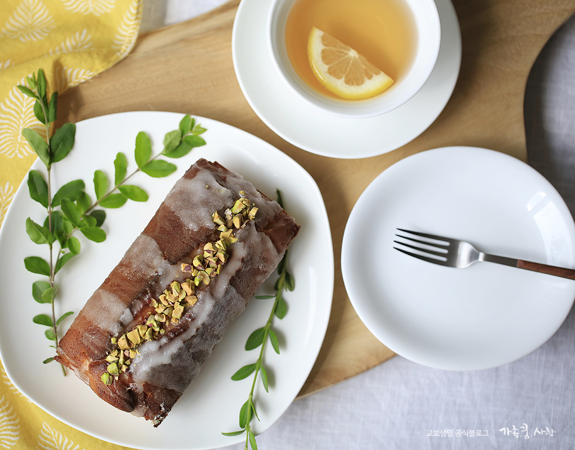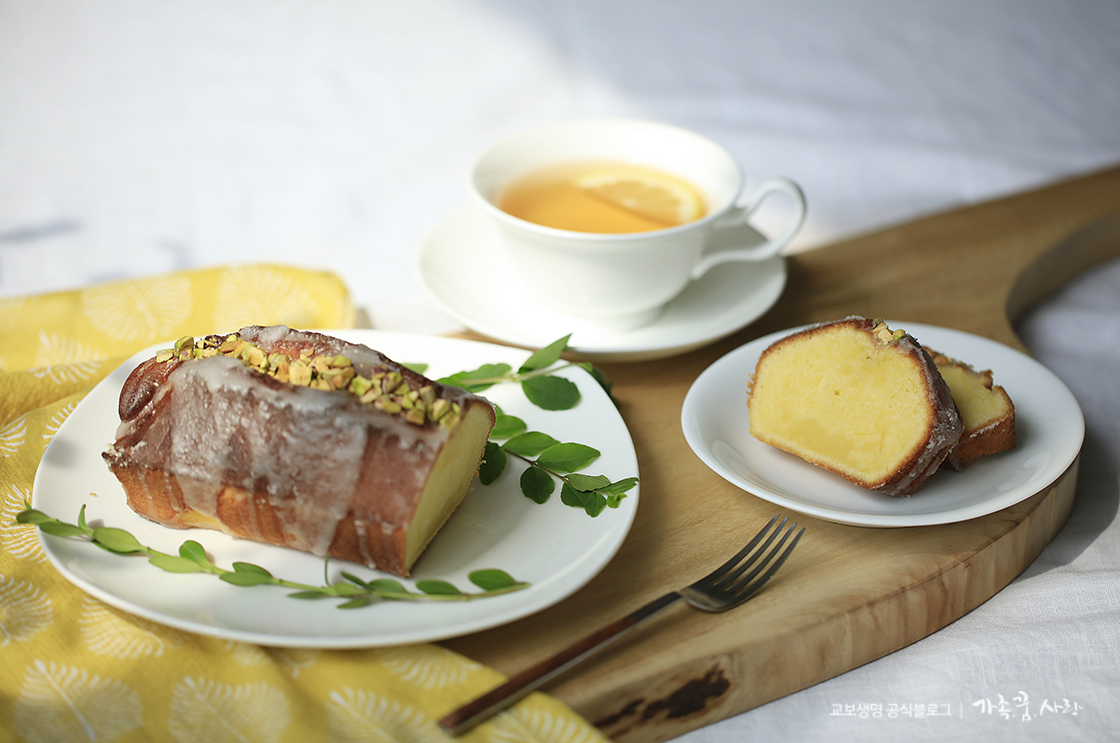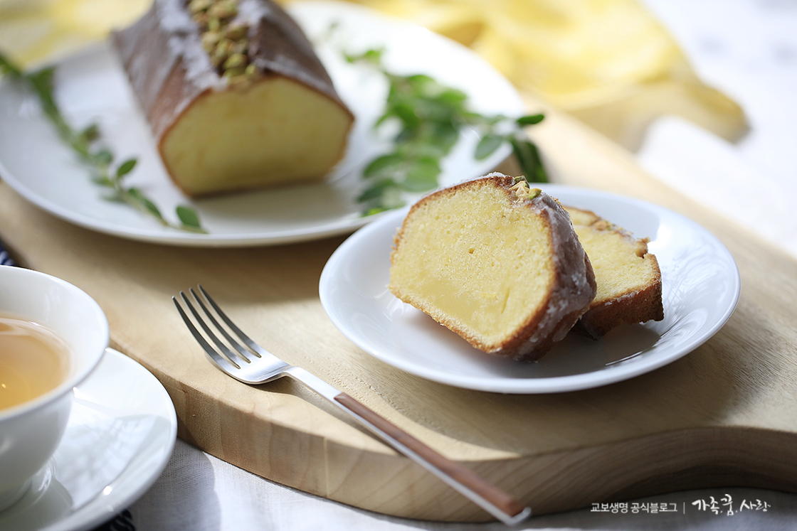 부드럽고 촉촉한 식감과 씹을 때마다 살아나는 레몬 향이 매력적인 상큼한 레몬파운드케이크입니다. 저는 파운드케이크 위에 피스타치오를 다져 토핑해 올려 봤어요. 레몬 슬라이스를 올려 토핑해도 맛있으니, 취향에 따라 예쁘게 토핑해 보세요.