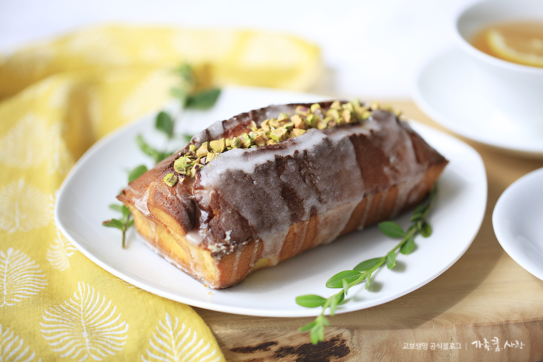 부드럽고 촉촉한 식감과 씹을 때마다 살아나는 레몬 향이 매력적인 상큼한 레몬파운드케이크입니다. 저는 파운드케이크 위에 피스타치오를 다져 토핑해 올려 봤어요. 레몬 슬라이스를 올려 토핑해도 맛있으니, 취향에 따라 예쁘게 토핑해 보세요.