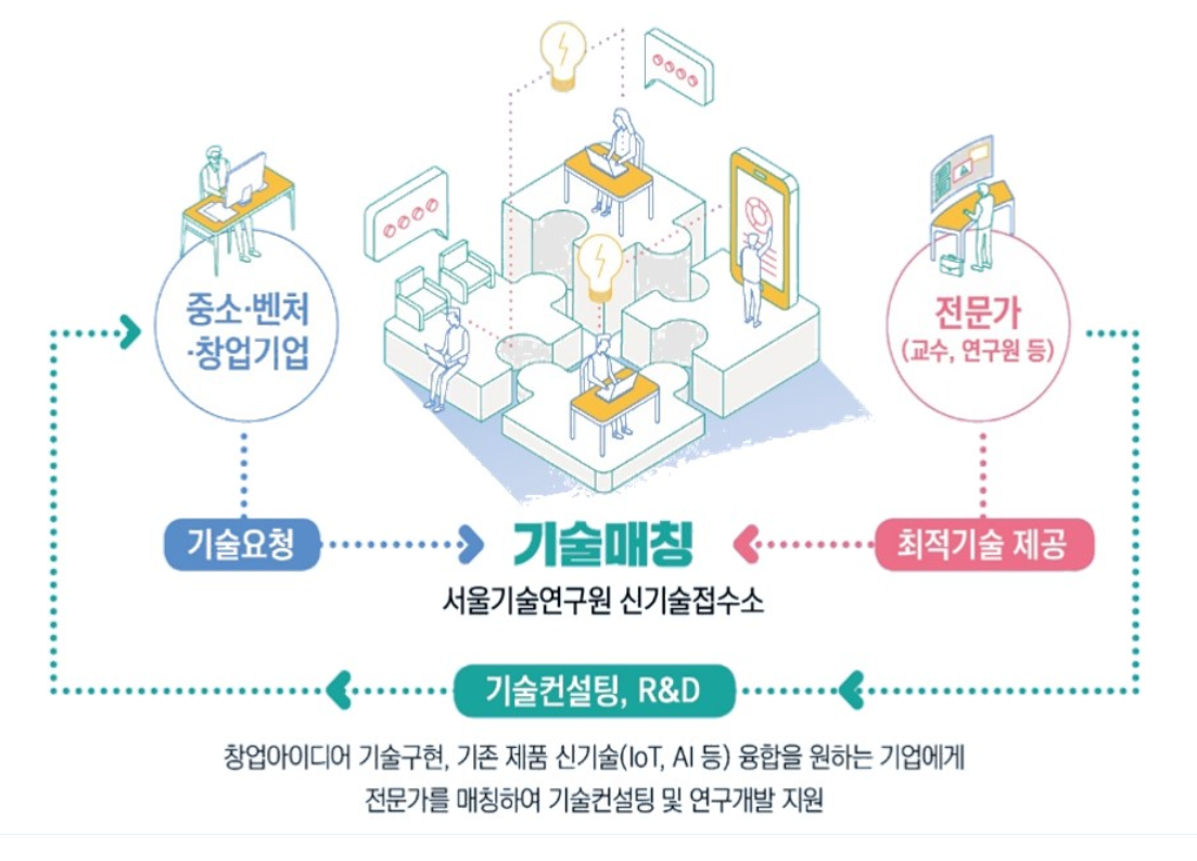 최근에는 ‘기술 매칭’ 사업도 진행되고 있습니다. 기술 매칭 사업은 캠퍼스타운 창업기업이 필요로 하는 기술을 신청 받아 기술전문가와 창업기업을 1:1로 매칭해주는 것을 말합니다. 기술개발 이후 사업화로 이어질 수 있도록 특허, 투자유치, 마케팅 등의 후속 지원도 진행한다고 해요. R&D 부서를 갖추지 못하고 기술 전문가와 네트워크가 부족한 창업 기업에게 실질적인 도움이 될 것으로 보입니다.