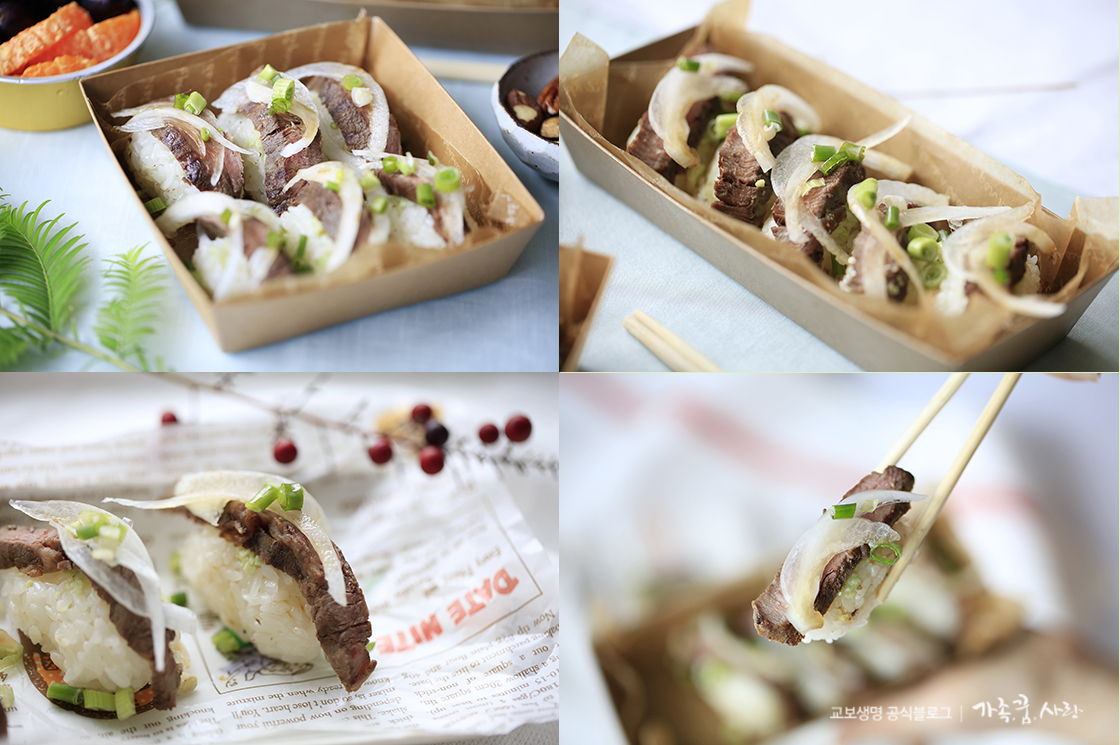 초밥은 집에서 만들기 어려운 요리라고 생각하기 쉽지만, 사실 단촛물 비율만 맞추면 굉장히 쉬운 요리랍니다. 오늘은 아이들도 맛있게 먹을 수 있는 소고기초밥을 만들어 보려고 하는데요, 스테이크용 소고기만 준비하면 푸짐하게 만들 수 있고, 비주얼도 고급스러워 손님 초대상에 올리기에도 좋아요. 나들이 갈 때 도시락으로 준비해 야외에서 하나씩 집어먹어도 맛있죠. 단백질과 비타민 A, B1, B2 등이 풍부한 소고기를 사용해 맛도 영양도 다 잡을 수 있는 소고기초밥, 지금부터 만들어 볼까요?