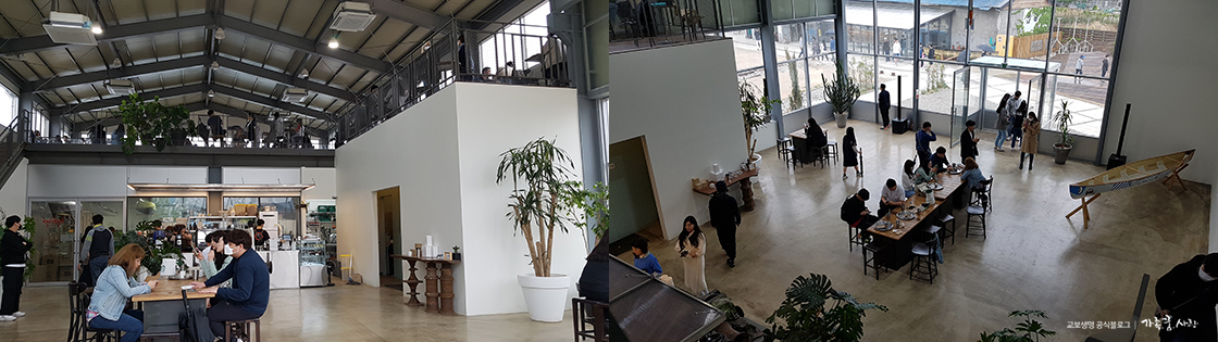 시골집 마루를 연상케 하는 좌식 테이블도 있었어요. 신발을 벗고 올라가 앉으면 편하게 담소를 나눌 수 있을 것 같았습니다.