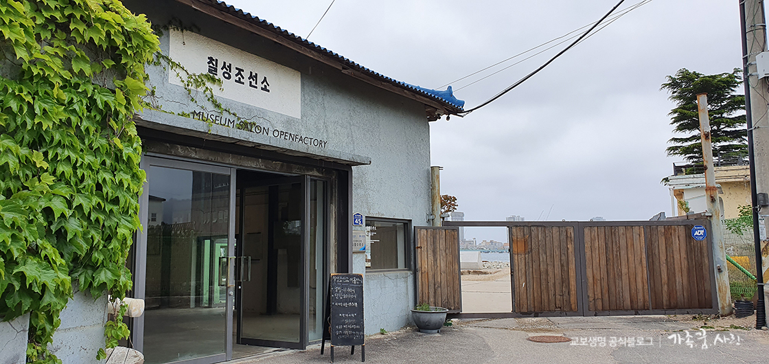 최근 속초의 핫플레이스로 떠오른 칠성조선소는 이름 그대로 한때 배를 만들고 수리하던 곳입니다. 문 닫은 조선소를 개조해 카페를 만들었다는 점이 매우 독특하고 신선했는데요, 카페이지만 작은 박물관 같으면서, 또 한편으로는 역사문화공간 같았어요. 석봉도자미술관 앞에 주차 뒤, 미술관 좌측으로 난 길을 쭉 걷다 보면 어렵지 않게 칠성조선소를 찾을 수 있습니다. 1952년 '원산조선소'라는 이름으로 시작한 칠성조선소는 2017년 8월까지 60년이 넘는 시간 동안 배를 만들고 수리해 바다로 보내는 일을 했다고 해요. 2018년 2월에 살롱, 뮤지엄, 플레이스케이프, 오픈 팩토리로 조성된 새로운 모습으로 다시 문을 열게 되었습니다. 입구에 있는 칠성조선소 ‘뮤지엄 살롱 오픈팩토리’라는 작은 전시공간으로 들어가면 각종 물품과 사진, 문서 자료들을 통해 이곳이 어떤 곳이었는지를 알아볼 수 있어요.