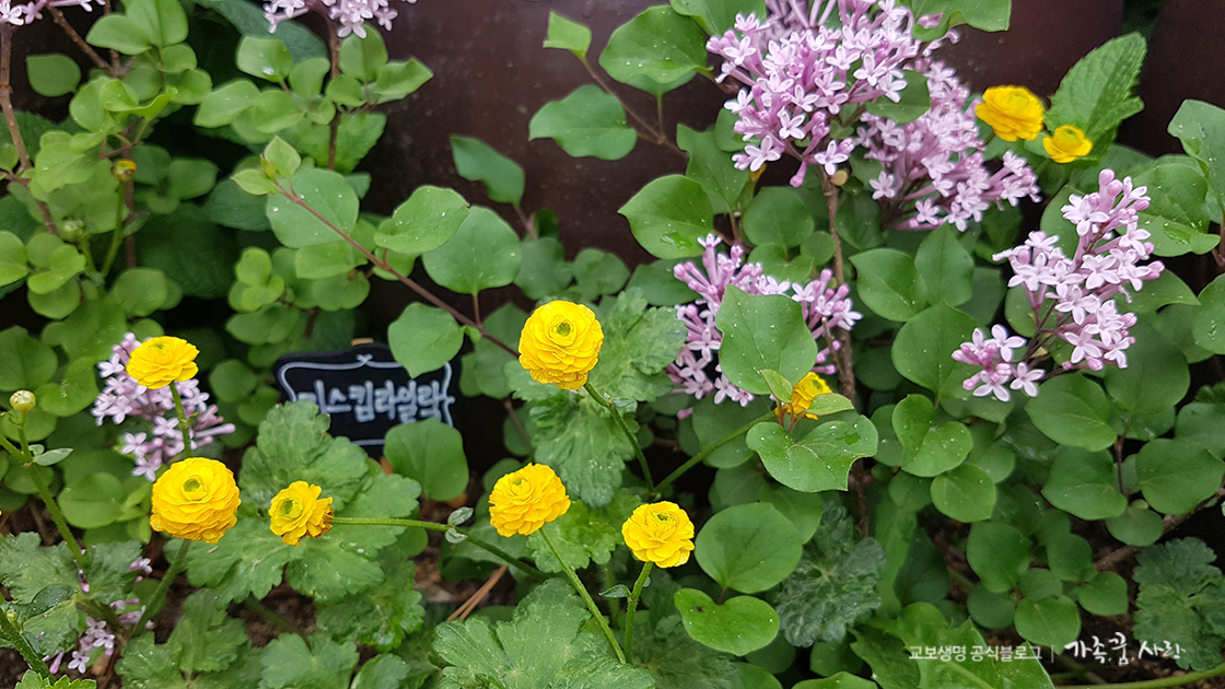 너울집에 오게 되면 건물 뒤켠에 자리한 예쁜 정원도 꼭 둘러보세요. 정원에 있는 다양한 꽃들 에는 저마다 이름표도 꽂혀 있었는데, 미스킴라일락이라는 재미있는 꽃도 발견할 수 있었습니다. 우리나라 토종식물인 수수꽃다리를 미국인 채집가가 미국으로 가져가 원예종으로 개량한 꽃이라고 해요. 당시 같은 사무실 여직원의 이름을 붙여서 미스킴라일락이 되었다고 합니다.