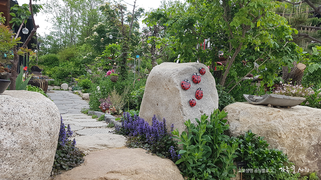 안으로 들어가니 카페 주인장이 신경을 쓴 듯한 소품들과 화분들이 곳곳에 놓여 있었습니다. 입구 옆 옹기 안에서는 금붕어와 올챙이가 헤엄치는 것을 볼 수 있었어요.