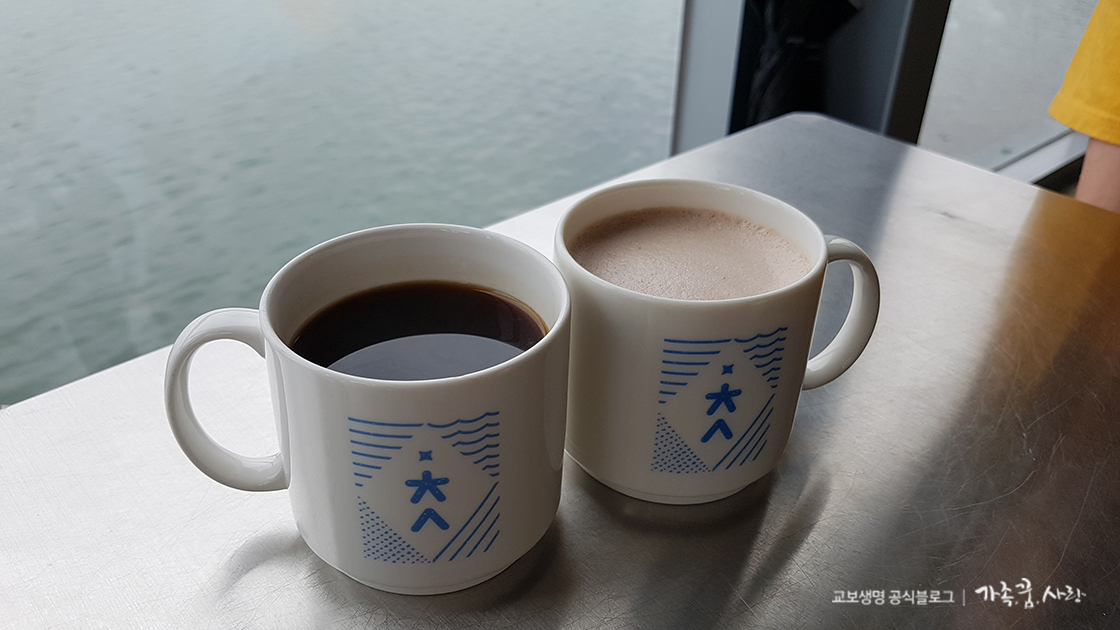 저는 따뜻한 커피와 핫초코를 주문했는데요, 아메리카노는 밸런스 있고 고소한 맛과, 산미가 도드라지는 맛 두 가지 중 하나를 고를 수 있어요. 칠성조선소의 초성, ㅊ과 ㅅ이 새겨진 컵에서 레트로 감성을 느낄 수 있었습니다.