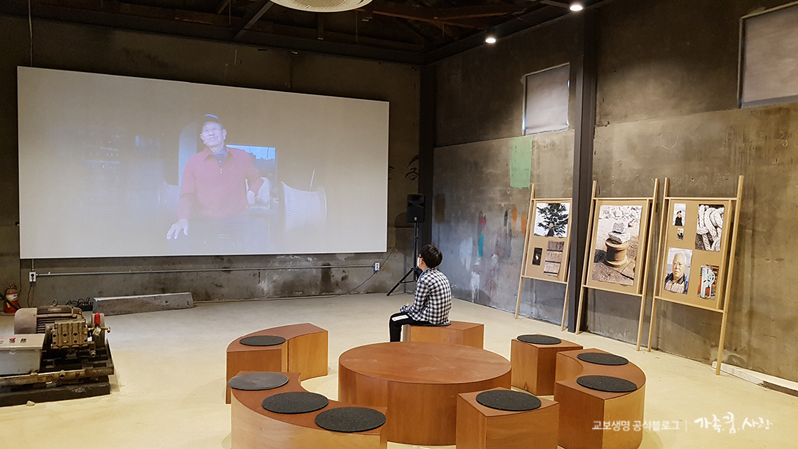 배 목수의 이야기를 담은 영상물 시청 공간도 있습니다. 잠시 앉아 조선소의 지난 시간들과 배 목수의 진솔한 이야기를 들어 보았어요.