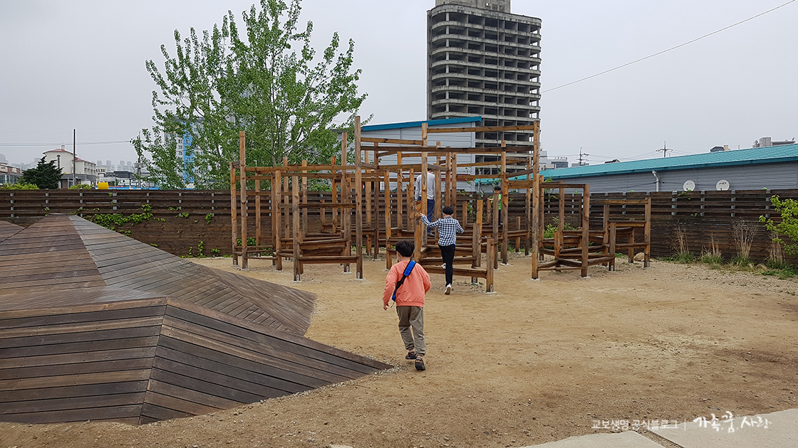 외부에는 파도, 산, 나무 그리고 배를 주제로 한 조형물들이 있는 공간도 있습니다. 아이들이 먼저 알아보고 달려가더라고요. 아이들은 이곳에서 신나게 뛰어놀며 한동안 시간을 보냈습니다.