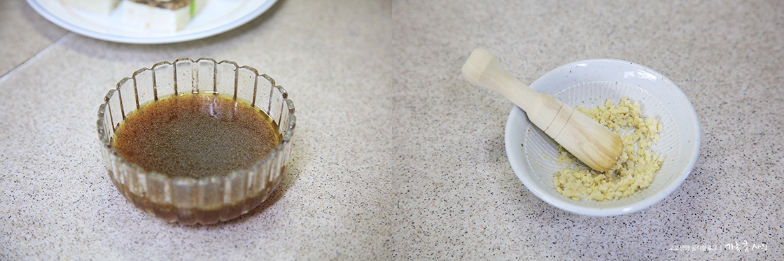 다짐육 양념장: 간장 1.5스푼, 미림 1스푼, 설탕 1/2스푼, 다진 마늘 1/2스푼, 참기름 1/2스푼, 후추 약간