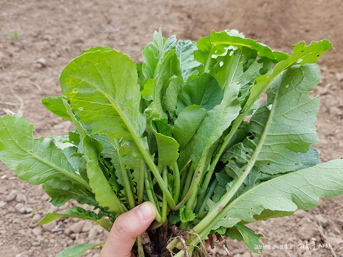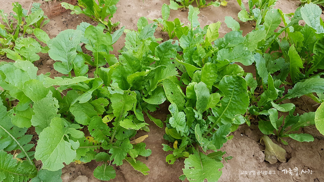 한 달 정도 키운 열무입니다. 날씨가 많이 가물어 생각처럼 잘 자라지는 못했어요. 그래도 어느 채소보다 튼튼하게 잘 자라는 것이 열무입니다. 화학 비료나 농약을 쓰지 않는 친환경 텃밭이라 열무잎에 구멍이 송송 뚫렸네요. 벌레들의 먹이가 됐어요.