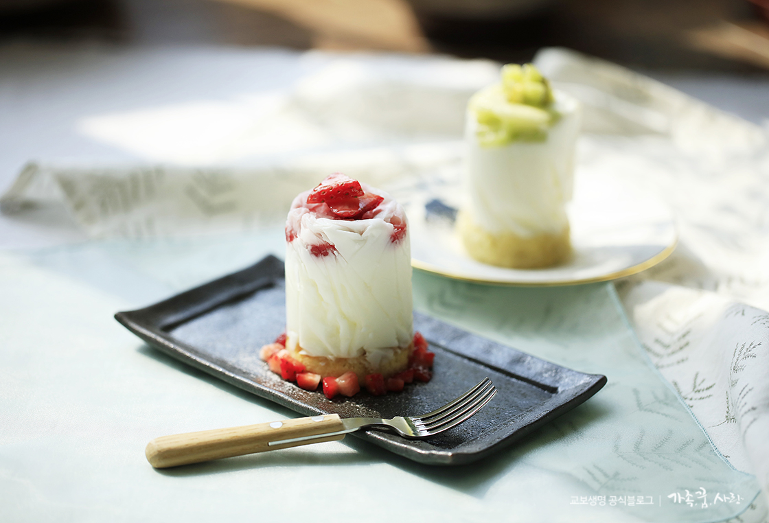 새콤한 요거트에 상큼한 과일이 더해져 기분이 절로 좋아지는 귀엽고 예쁜 아이스크림 케이크인데요, 저는 플레인맛 요거트를 사용해 단맛을 줄였는데, 먹기 직전 연유를 살짝 뿌려 먹으니 더 맛있더라고요. 취향에 따라 다양한 과일로 대체하셔도 좋습니다. 재료도 간단하고 만드는 방법도 간단한 요거트 아이스크림 케이크로 입안 가득 시원하게 퍼지는 행복함을 느껴 보세요!