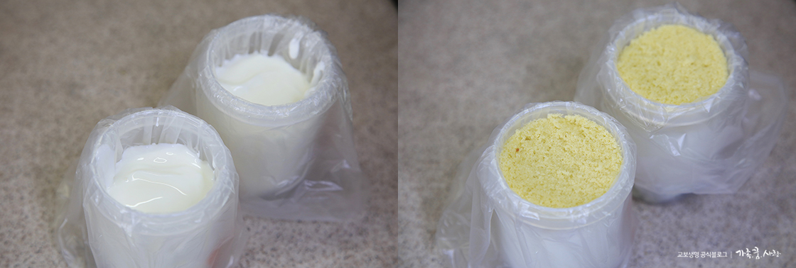 재료를 담아서 얼려줄 통은 깊이가 어느 정도 있는 것으로 준비해 주세요.
