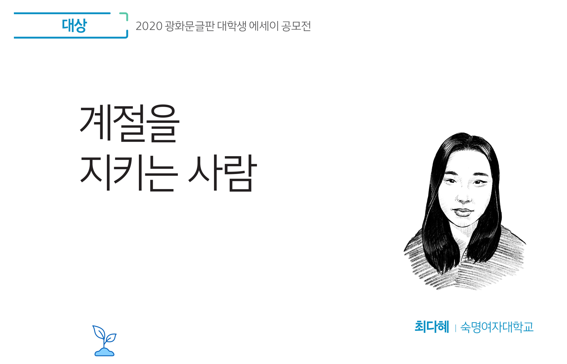 *본 게시물은 2020 광화문글판 대학생 에세이 공모전 수상작으로 상업적 용도의 사용, 무단전제, 불법배포를 금합니다.