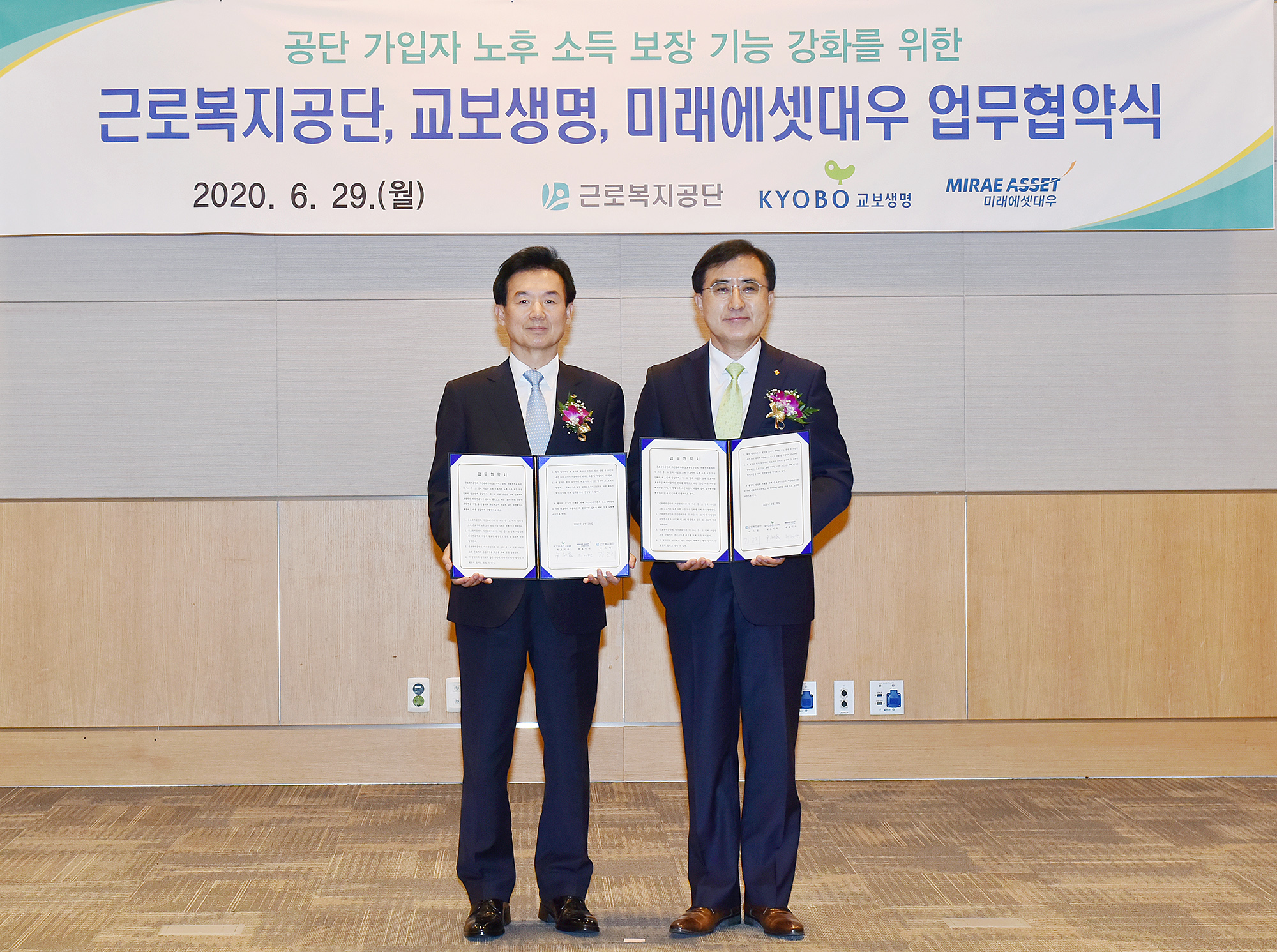 교보생명은 여의도 전경련회관에서 윤열현 교보생명 대표이사 사장, 강순희 근로복지공단 이사장 등이 참석한 가운데 근로복지공단과 퇴직연금 자산관리사업자 업무협약(MOU)을 체결했다고 30일 밝혔습니다.