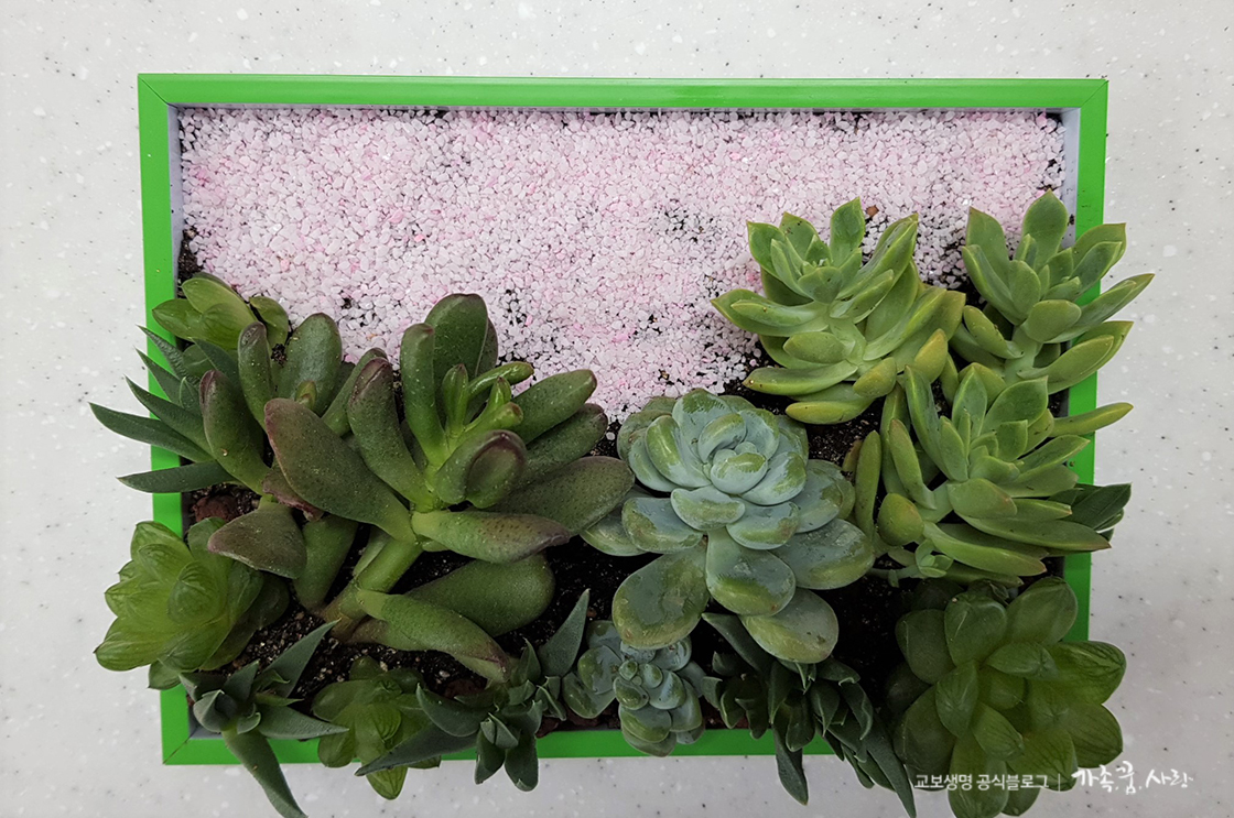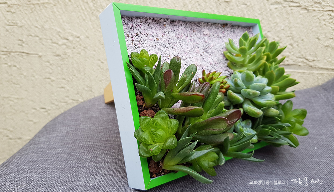 다육식물 액자는 키우는 재미와 보는 재미를 동시에 느낄 수 있는 다육 식물 공예입니다. 깔끔하고 크기도 작아서 책상이나 테이블에 올려두고 감상하기에도 좋죠.