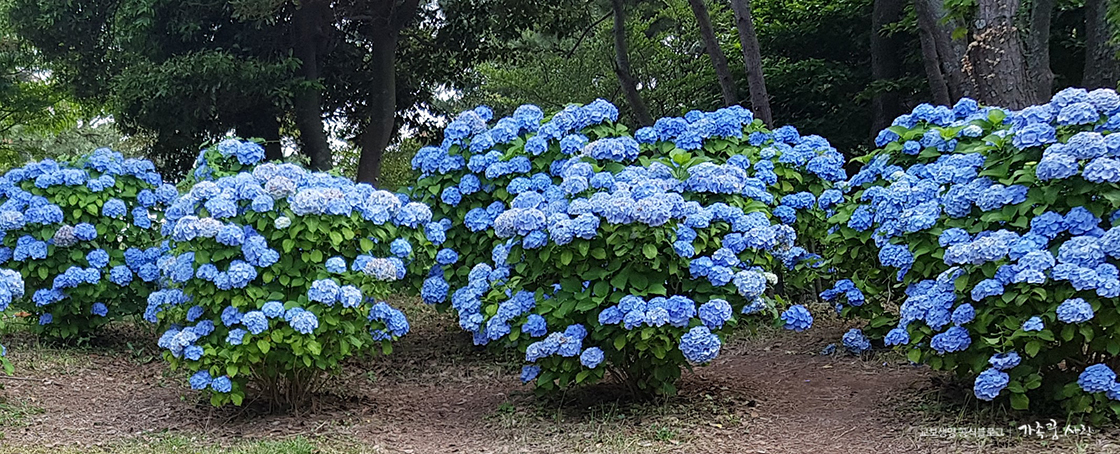 푸른 수국이 필 때 혼인지는 수국정원이라고 해도 과언이 아니랍니다. 한번 가보면 꼭 다시 가고싶은 수국 명소가 바로 혼인지예요.
