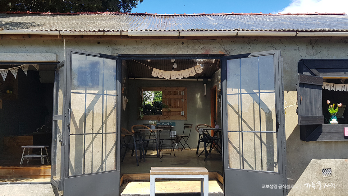 무인 카페로 알려져 있는데, 실은 운영을 하지 않는 곳입니다. 음료를 사 먹을 수 있는 곳이 아니죠. 하지만 내부에는 감성 소품과 의자, 테이블이 잘 관리되고 있어, 잠시 쉬면서 예쁜 사진을 찍기에 좋습니다.