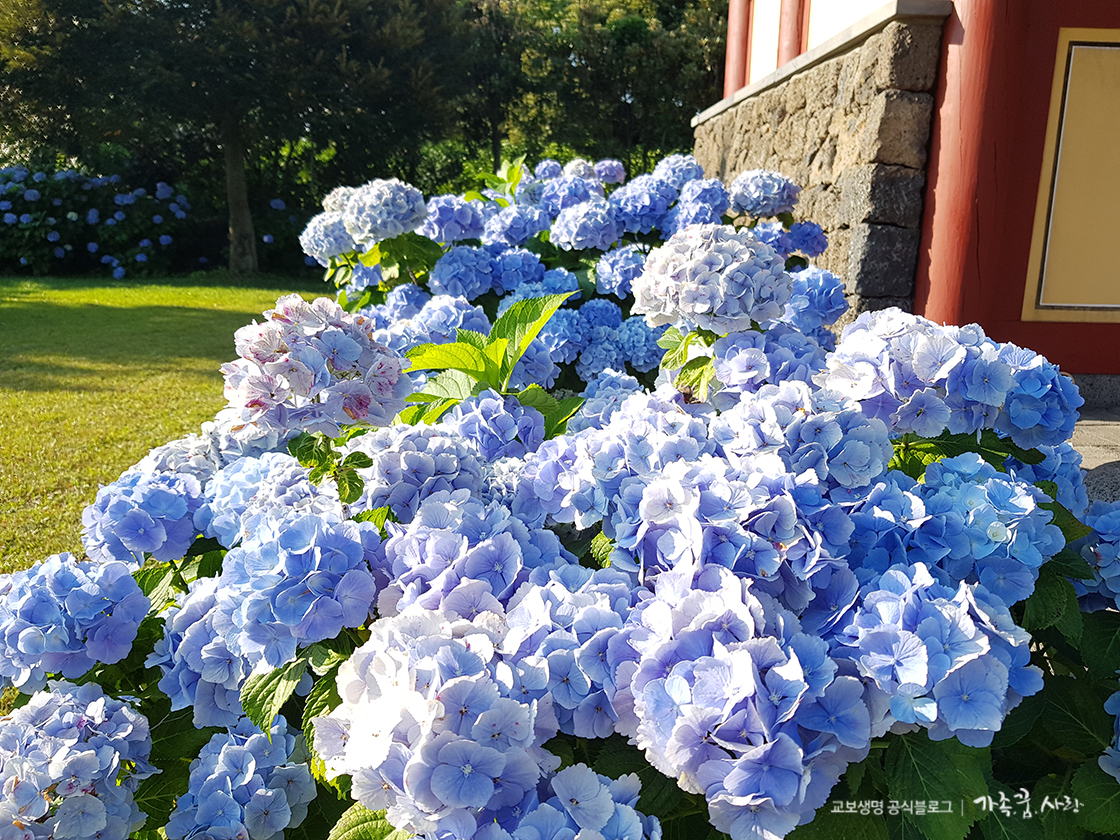 푸른 수국이 필 때 혼인지는 수국정원이라고 해도 과언이 아니랍니다. 한번 가보면 꼭 다시 가고싶은 수국 명소가 바로 혼인지예요.
