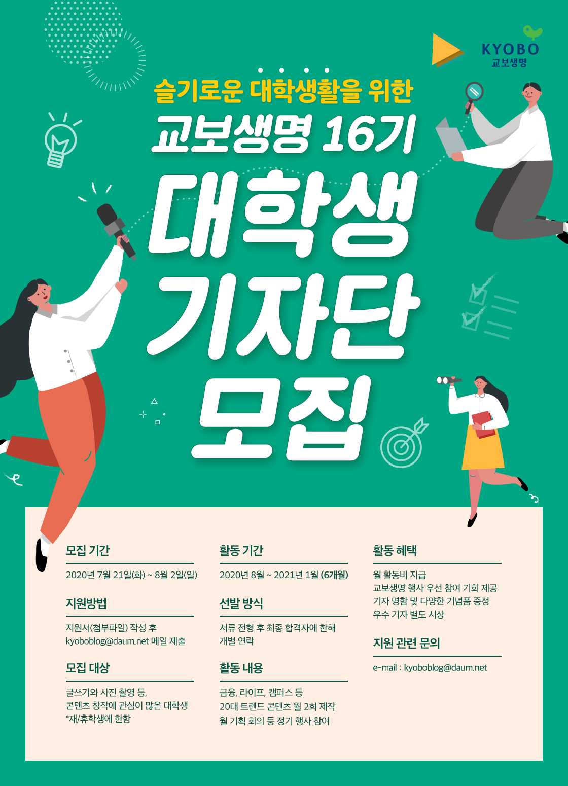 교보생명 공식블로그 <가족,꿈,사랑>에서 16기 대학생 기자단을 모집합니다.