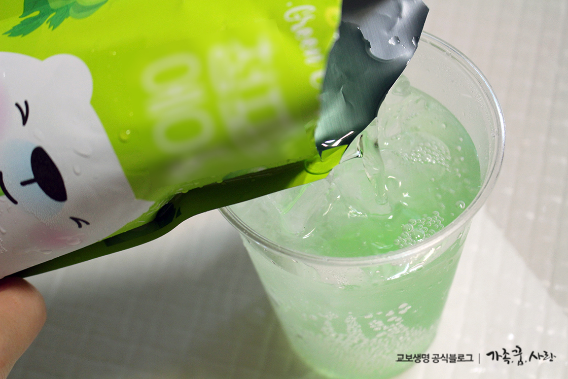 2. 그 위에 청포도에이드를 살포시 넣어주면, 끝!