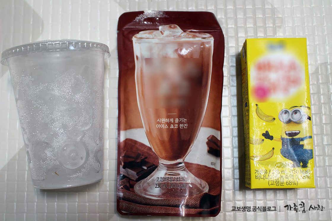 재료 : 얼음컵, 아이스초코, 바나나우유