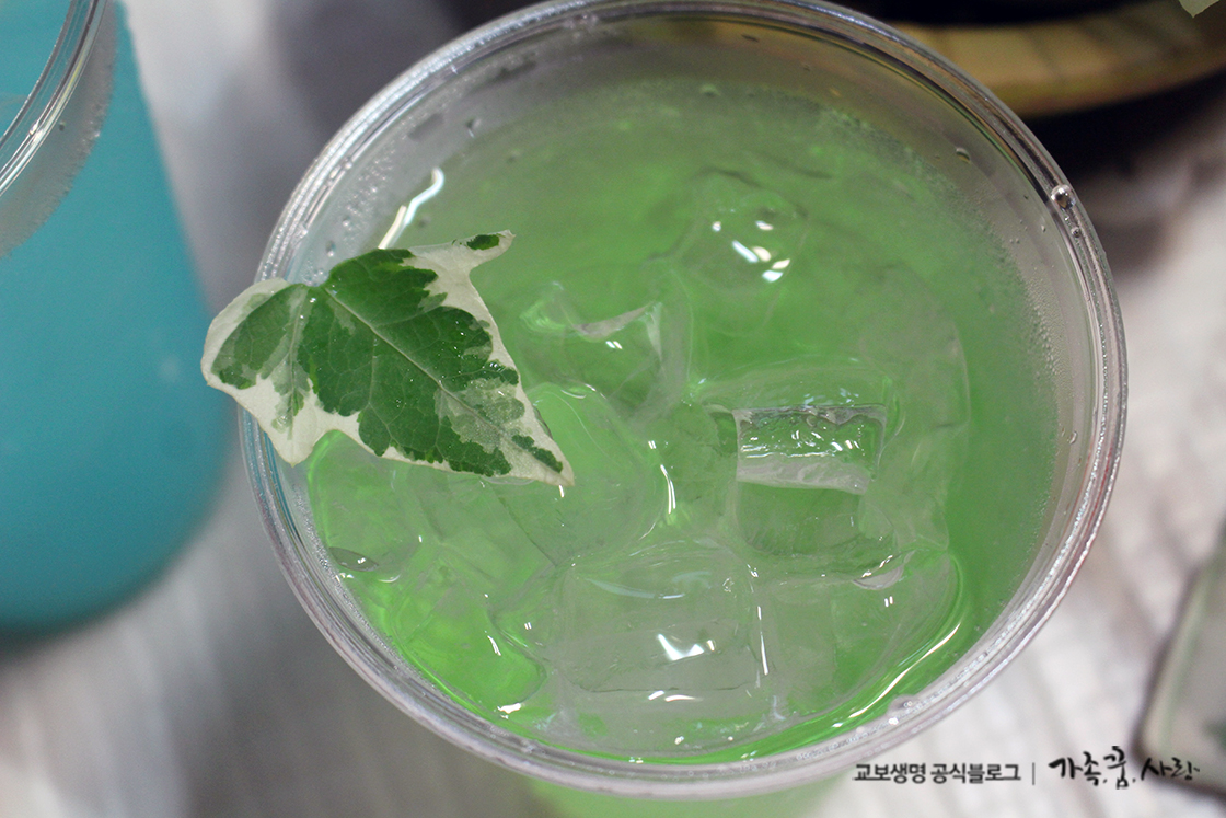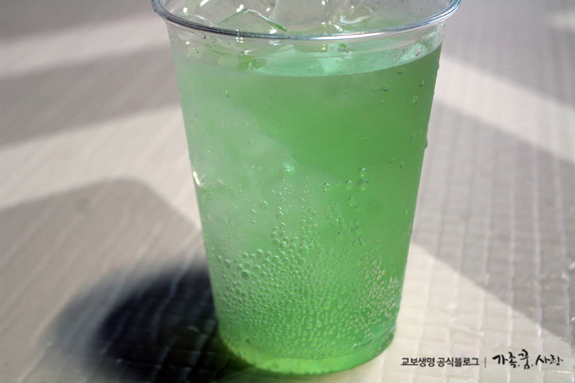 아들이 가장 목 넘김이 시원하다며 극찬한 사이다 청포도에이드! 여기에 청포도 젤리나 실제 청포도를 동동 띄워주어도 너무 맛있을 것 같아요.