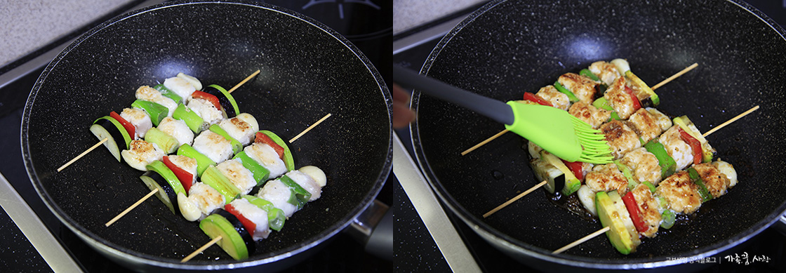 닭가슴살을 이렇게 꼬치구이로 만들어 주면 평소 좋아하지 않는 채소도 잘 먹더라고요. 아이들 영양간식으로 제격입니다. 달달한 갈비맛 양념이라 매운 것을 못 먹는 아이들도 즐기기 좋고, 다이어트 식단으로도 손색없습니다. 게다가 담백하면서 짭짤한 맛이 시원한 맥주를 떠올리게 해 안주로도 좋답니다.