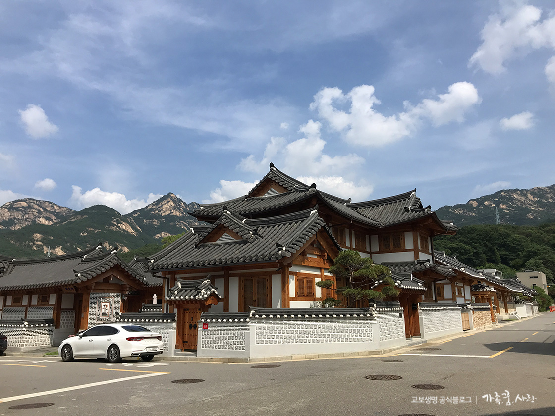 서울에 있는 한옥마을인 서촌과 북촌 외에 한옥마을이 또 있다는 사실을 아셨나요? 바로 북한산 자락을 병풍처럼 끼고 있는 '은평한옥마을'입니다. 얼마 전 유재석, 이효리, 비가 함께한 프로젝트 그룹 ‘싹쓰리’의 공식활동을 마무리하는 방송에 등장해 눈길을 모았죠. 싹쓰리 멤버 모두가 이곳에 도착하자마자 마을 전경에 감탄을 금치 못하는 모습이 나왔는데요. 펜션처럼 빌려주기도 하는 이곳은 미래형 한옥으로 유명합니다. 서촌과 북촌 한옥마을이 기존 한옥을 개량한 올드 타운이라면 '은평한옥마을'은 뉴타운으로 한옥의 새로운 모습을 보여주고 있기 때문입니다.