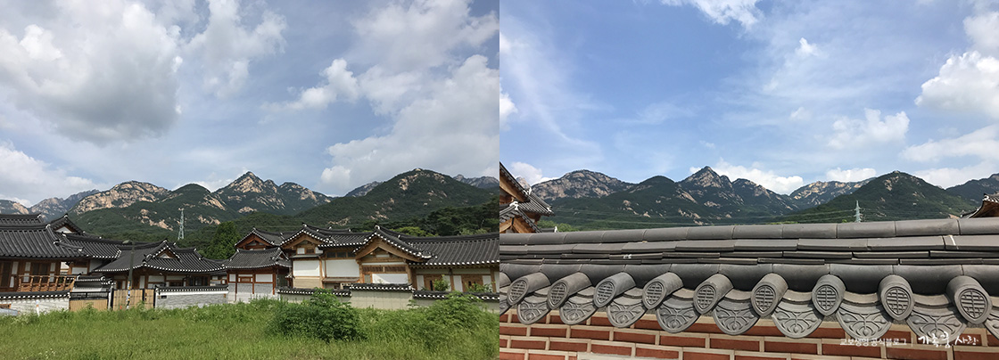 '은평한옥마을'의 가장 큰 매력은 마을 뒤에 있는 북한산입니다. 병풍처럼 펼쳐진 북한산은 마을 어디에서나 잘 보입니다. 한옥과 북한산이 어우러져 만들어진 멋진 경치는 감탄을 절로 자아내게 합니다.