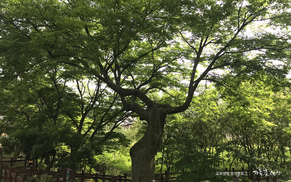 '은평한옥마을' 8경 중 하나인 느티나무는 200년 수령을 자랑하는 마을 수호신입니다. 사방으로 펼쳐진 나뭇가지와 빼곡한 푸른 잎들이 느티나무의 역사를 고스란히 보여줌과 동시에 마을로 들어오는 잡귀를 모두 잡아줄 듯한 모습입니다.