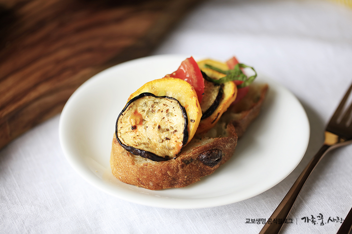 파스타를 삶아 라따뚜이랑 같이 먹으면 라따뚜이 파스타가 되고, 또띠아에 싸서 먹으면 브리또, 빵이랑 곁들어 내면 근사한 브런치 메뉴가 됩니다. 가지와 호박은 수분을 날려주면서 구워 쫄깃한 식감과 부드러운 토마토와 함께 먹는 재미가 있고 채소 본연의 맛이 느껴져 좋아요. 채소를 싫어하는 아이들도 피자 맛이 난다며 잘 먹는 메뉴로 여름이면 자꾸 생각나서 즐겨 먹게 된답니다.