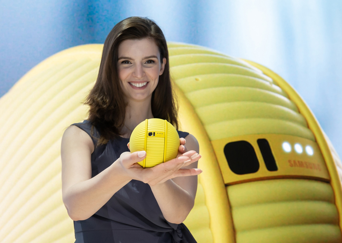 두 번째 반려 로봇은 삼성전자의 '볼리'입니다. 작은 공 모양의 로봇 '볼리'가 사용자의 목소리를 듣고 달려오는 모습은 영락없는 강아지와 고양이입니다. 바퀴나 발로 움직이는 로봇이 아니라 어디든 자유롭게 이동할 수 있는 점은 볼리의 큰 특징 중 하나인데요. IoT 기술로 스마트 기기에 연결된 볼리는 집 안 구석구석을 돌아다니며 공기청정기, TV, 에어컨 등을 조작하고 관리합니다.