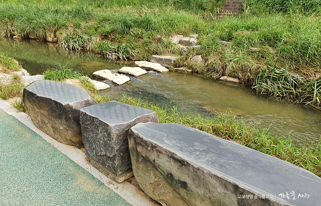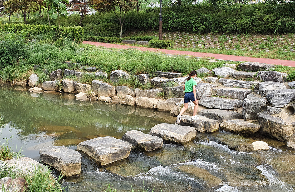 장지천 수변길을 걷다 보면 만날 수 있는 징검다리입니다. 아이들이 아주 좋아해요. 물을 건널 때 다리에 물이 튀어 시원하다며 활짝 웃는 아이들의 모습을 보고 있으면 절로 미소 짓게 됩니다.