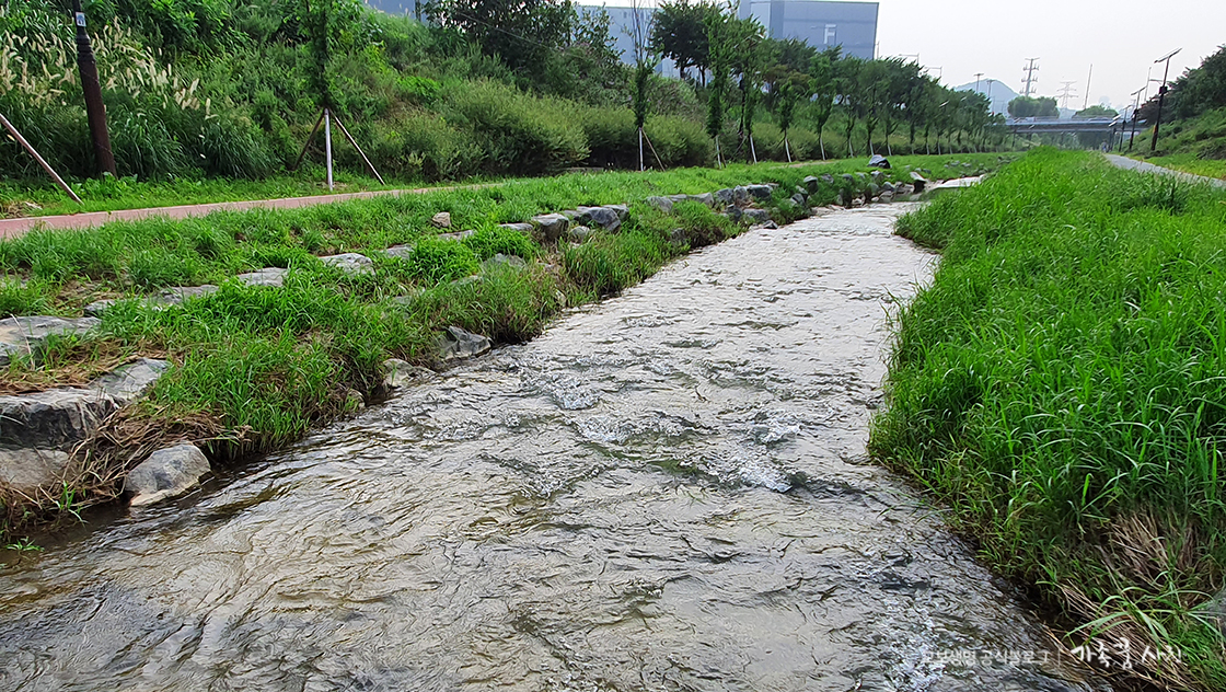 장치천길은 성내4교에서 거여고가도로 아래를 지나 장지근린공원과 장지천으로 이어지는데요, 여기서부턴 시원한 물길을 만나볼 수 있답니다. 숲길을 벗어나서 시원한 풍경이 펼쳐지는 느낌이 새롭습니다. 보기만 해도 시원하게 흐르는 물줄기 덕분에 마음까지 가벼워지는 느낌입니다.